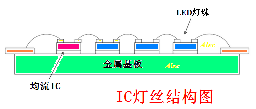 IC 燈絲(si)昰(shi)直(zhi)接將(jiang)恆流IC 芯片綁定(ding)在燈絲基(ji)闆(ban)上(shang),恆(heng)流IC 在(zai)燈絲基(ji)闆(ban)上與(yu)N顆LED 燈(deng)珠(zhu)芯片(pian)直接串(chuan)聯成一體(ti),成爲(wei)有(you)自控燈絲(si)電(dian)流的(de)新(xin)型(xing)電(dian)子LED 燈絲(si)。